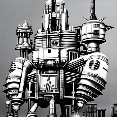"There is a mythical robot roaming the post-apocalyptic countryside, aimlessly stomping through the landscape. Over the decades, people have started to settle on the surface of the metal giant and call it their home." - From the Saga of Ivan the Living City